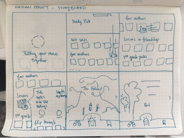 Typically, Day 3 is the phase where each member of the team presents their solution sketches, and the group decides on the winning idea. Since this is a 1-person sprint, I used this day to map the user journey with a storyboard.